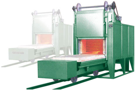 臺車式電阻爐系同期作業(yè)式電爐,可供大中型金屬機(jī)件和材料的正火、退火等熱處理加熱之用。臺車式電阻爐由爐殼、爐襯、加熱元件、爐門、臺車及控制柜等組成。臺車可以移動,便于裝卸料,降低勞動強(qiáng)度;爐體與臺車間采用新穎自動密封,改善了爐溫均勻性;爐襯由0.6超輕質(zhì)耐火磚砌成;加熱元件是由高電阻合金絲繞制成螺旋狀,安置在爐襯的擱磚上及臺車的爐底擱磚上;爐門的升降及臺車的進(jìn)出均為機(jī)械傳動,并裝有電器連鎖裝置;爐底板采用耐熱鋼鑄件。另在爐頂上設(shè)有二支熱電偶,一支作為檢測爐溫用,另一支作為超溫保護(hù)用。