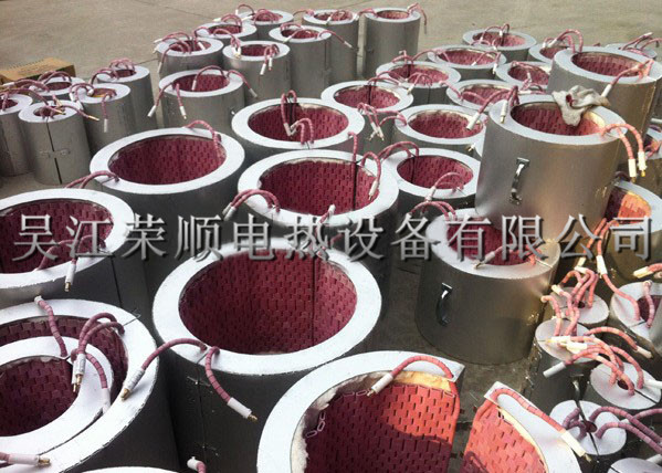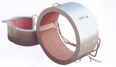 以履帶式加熱器作熱源,配以保溫材料及外殼,做成圈型對(duì)開式加熱器,便于裝卸,適用于中小型管道的局部加熱,最高工作溫度750℃。